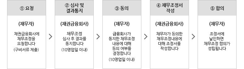 - 5. 합의 : (채무자) 조정서에 날인하면 채무조정 합의가 성립됩니다.