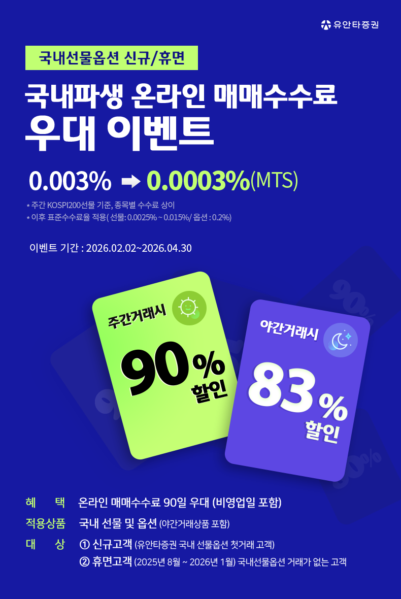 • 적용상품 : 국내 선물 및 옵션 (야간거래상품 포함)