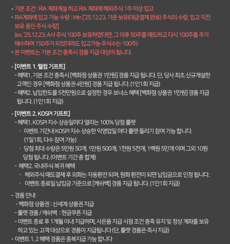 • 기본 조건 : RIA 계좌개설 하고 RIA 계좌에 해외주식 1주 이상 입고